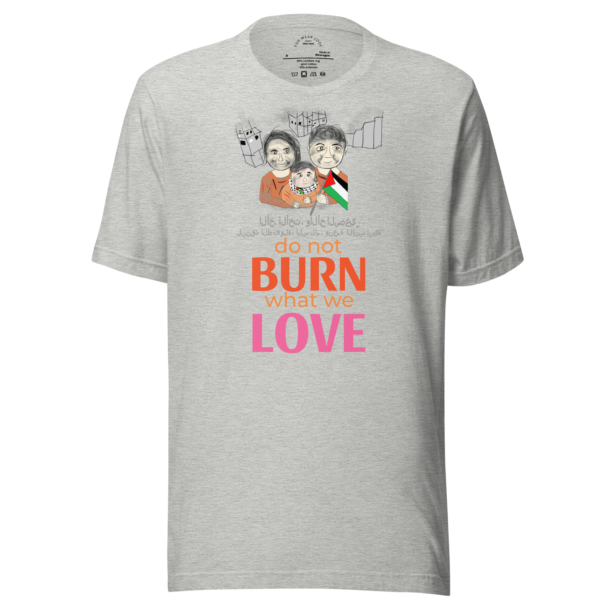 No pudimos evitar preguntarnos: ¿qué tipo de fortaleza permite a estos niños sonreír en circunstancias tan extremas? Su valentía nos inspiró profundamente, despertando el deseo de honrar su espíritu. Fue en ese momento que decidimos crear una camiseta especial , un diseño que no solo celebrara su resiliencia, sino que también difundiera conciencia y apoyo a las personas afectadas por conflictos.