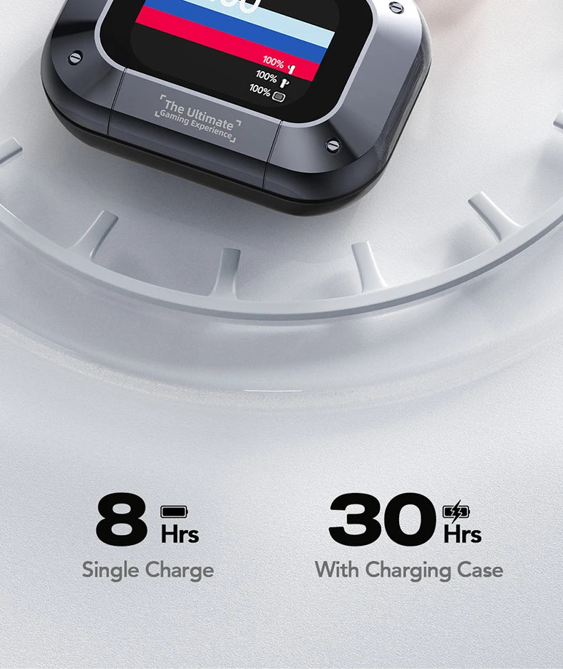 Charging System: Compact charging case with Type-C USB charging port.