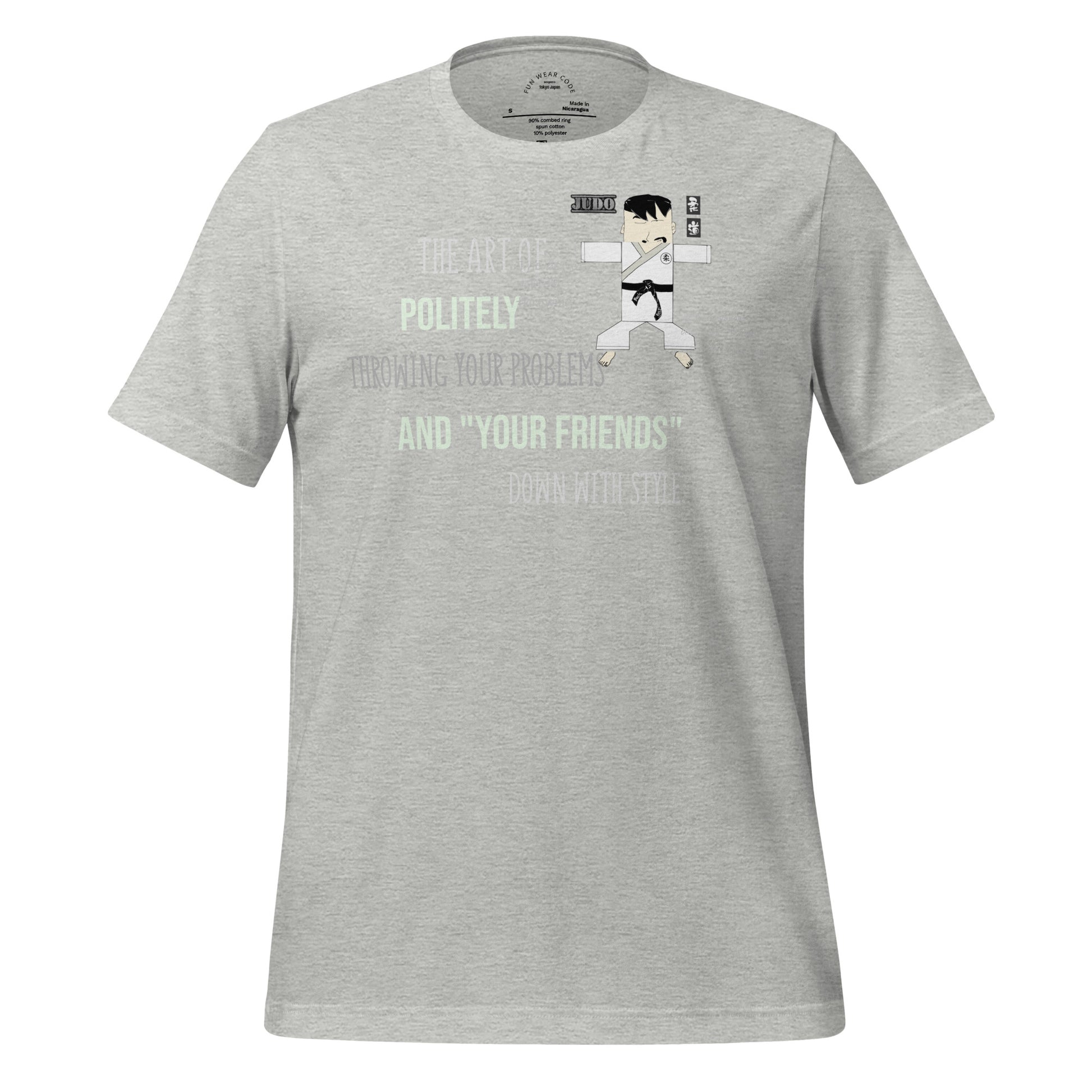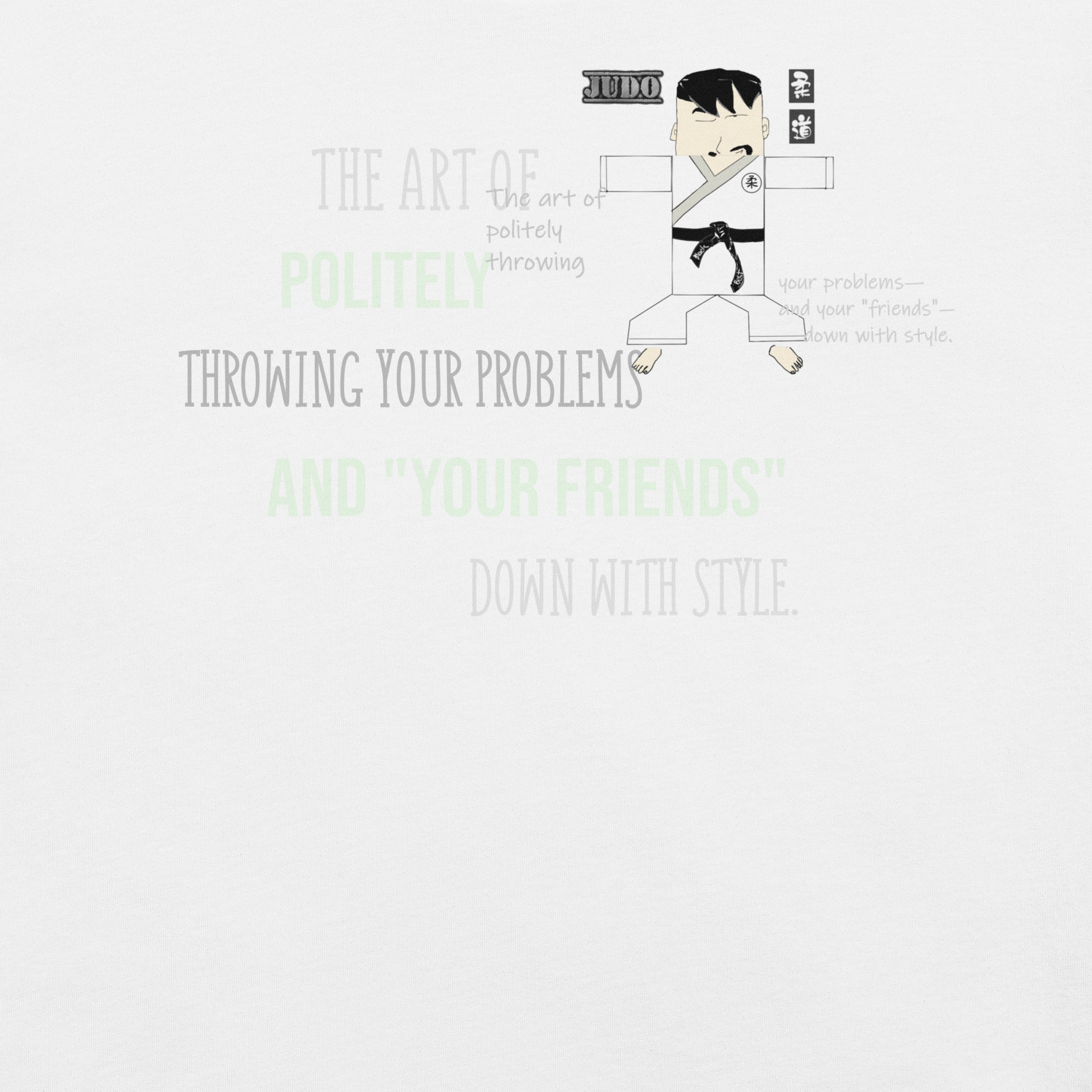 Master the art of comfort with this judo-themed tee that blends athletic style with humor. Crafted from soft, lightweight fabric with just enough stretch, it moves with you whether you're on the mat or out on the town. The witty judo graphic and clever pun deliver instant personality to your everyday rotation. Perfect for martial arts enthusiasts and anyone who appreciates a good laugh—this tee proves that style and substance can absolutely go hand in hand.