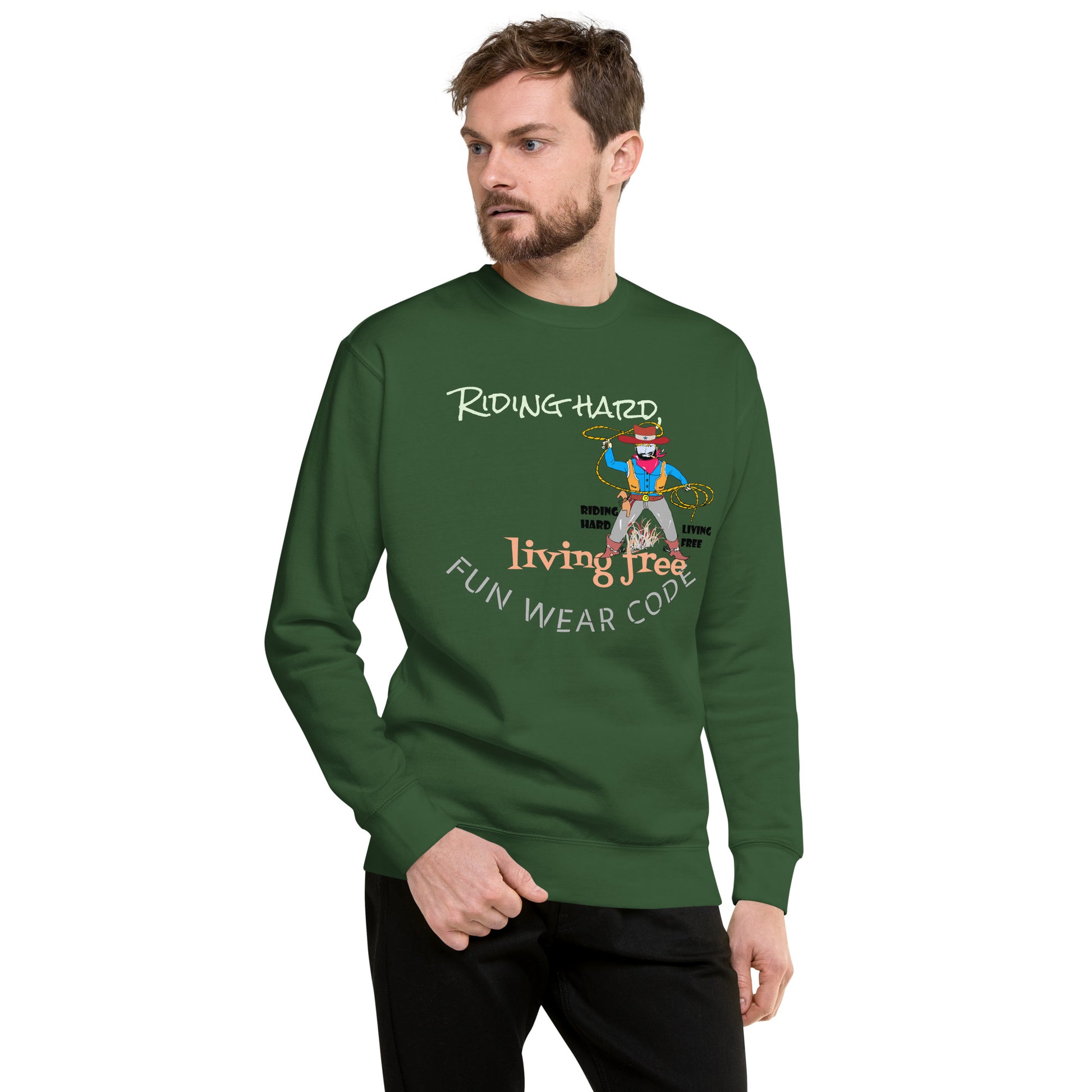 Embrace effortless style with this premium sweatshirt, designed for those who dare to stand out. Featuring a classic crew neck, reinforced long sleeve cuffs, and a clean flat hem, it's built for layering or solo wear. The plush fleece lining delivers all-day comfort and warmth, while the relaxed fit makes it perfect for everyday adventures. Channel your bold, adventurous spirit with authentic cowboy-inspired graphics that celebrate your unique personality. Whether you're navigating city streets or embracing your wild side, this versatile piece becomes an instant wardrobe essential that supports your confident, contemporary look.